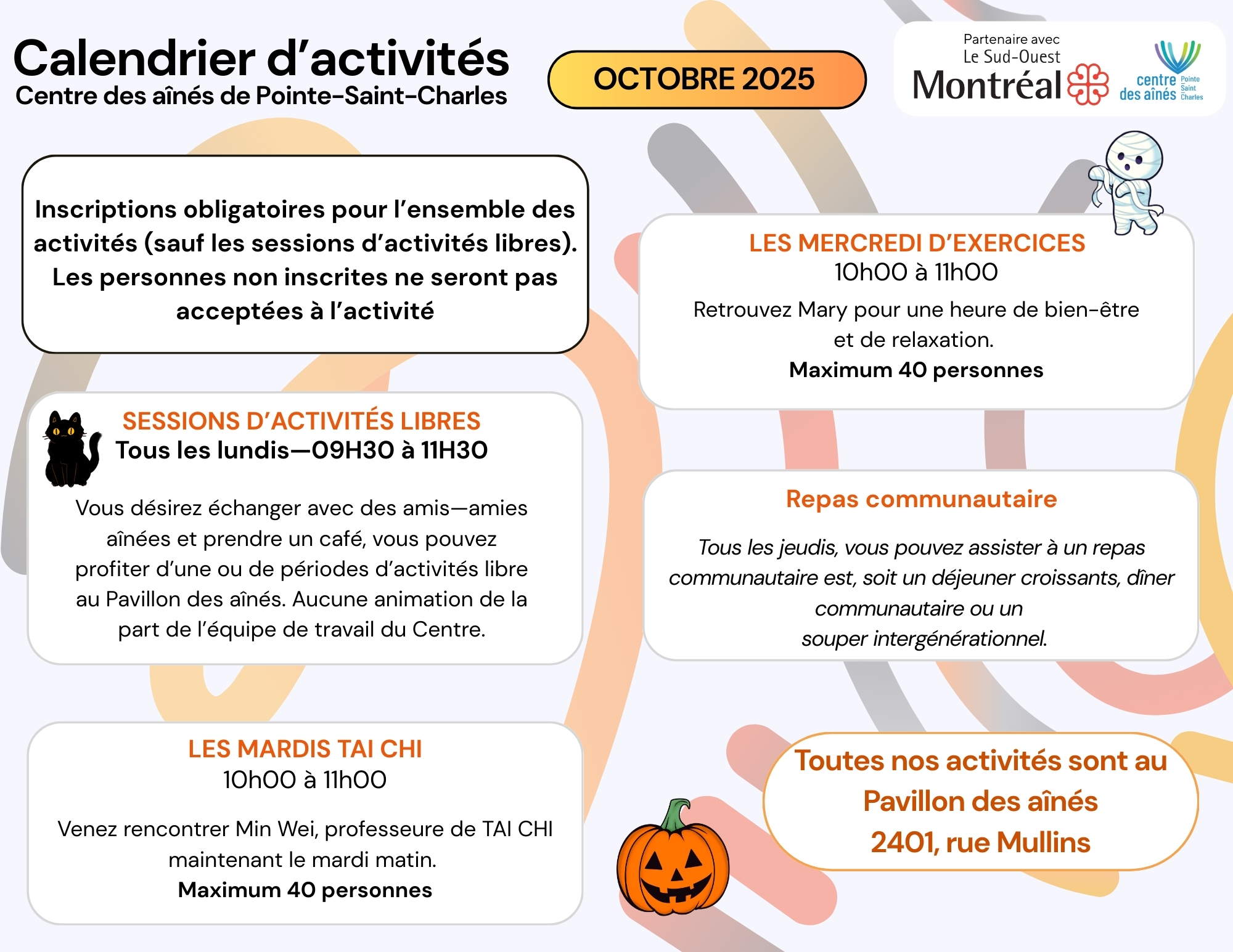 Nous comprenons que la période des impôts peut parfois être source de stress et de confusion. C’est pourquoi le Centre des aînés de Pointe-Saint-Charles est […]