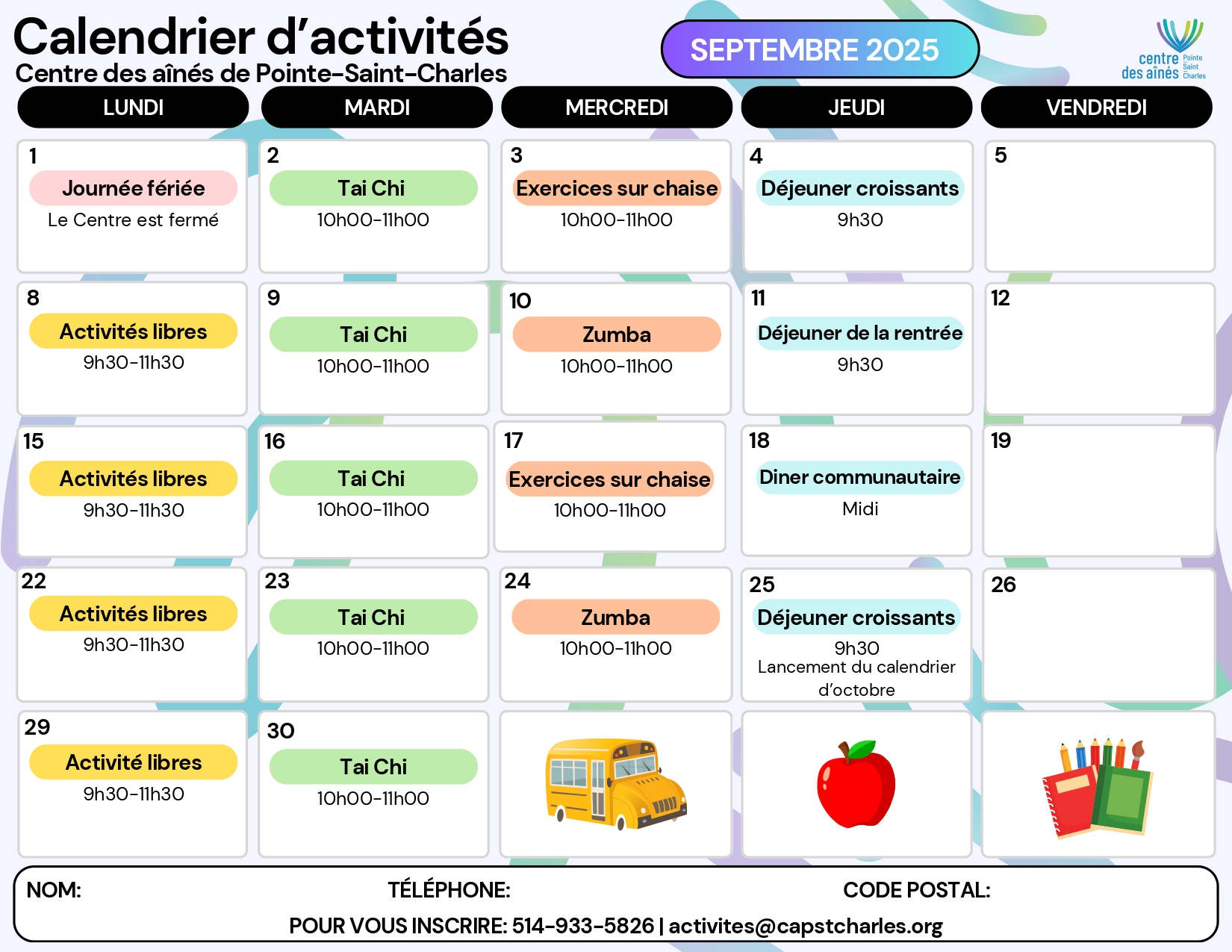 Voici le calendrier de septembre 2025, il est possible de le télécharger avec ce lien: